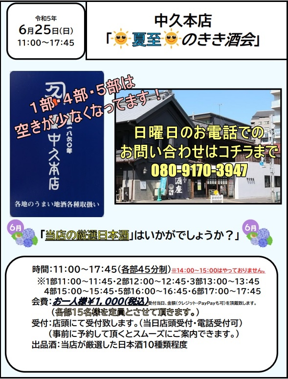 ※当日出品するお酒、予告なく変更となる場合がございます。ご了承の程宜しくお願い致します。