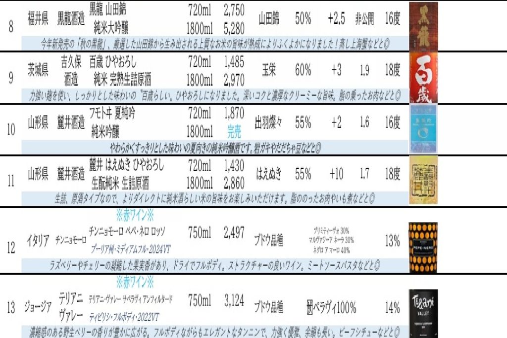 色々なタイプの秋酒をリストアップ致しましたので、楽しんで頂けるかと思います。