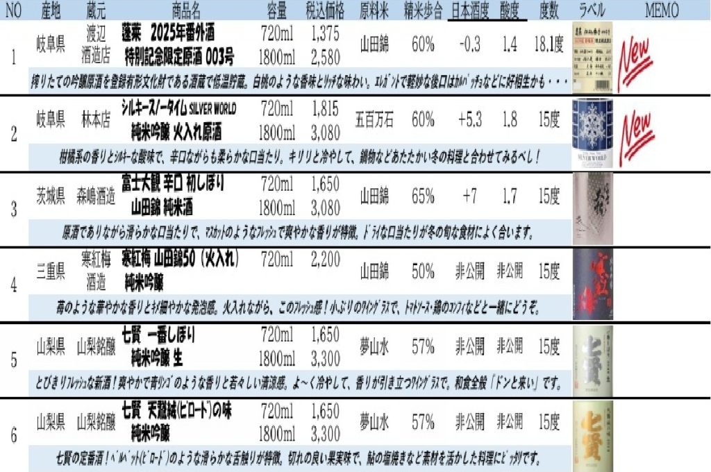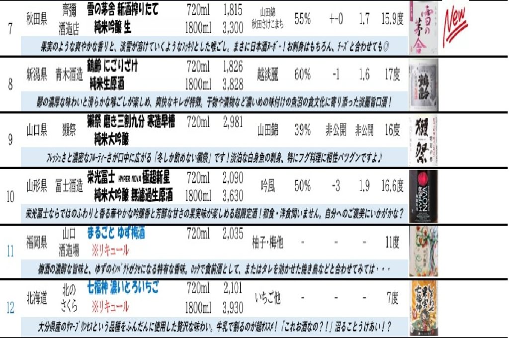 (季節柄「新酒しぼりたて」などのラインナップが多くなるかと思います!)