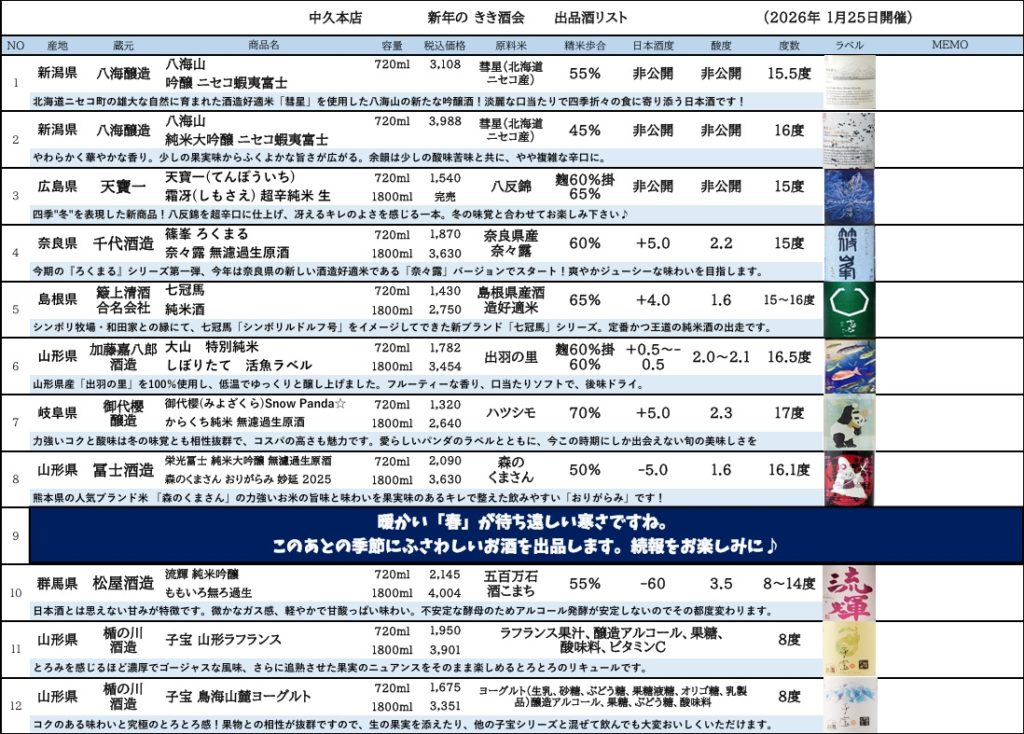 2026年1/25(日)開催の「中久本店 新年のきき酒会」についてお知らせ!