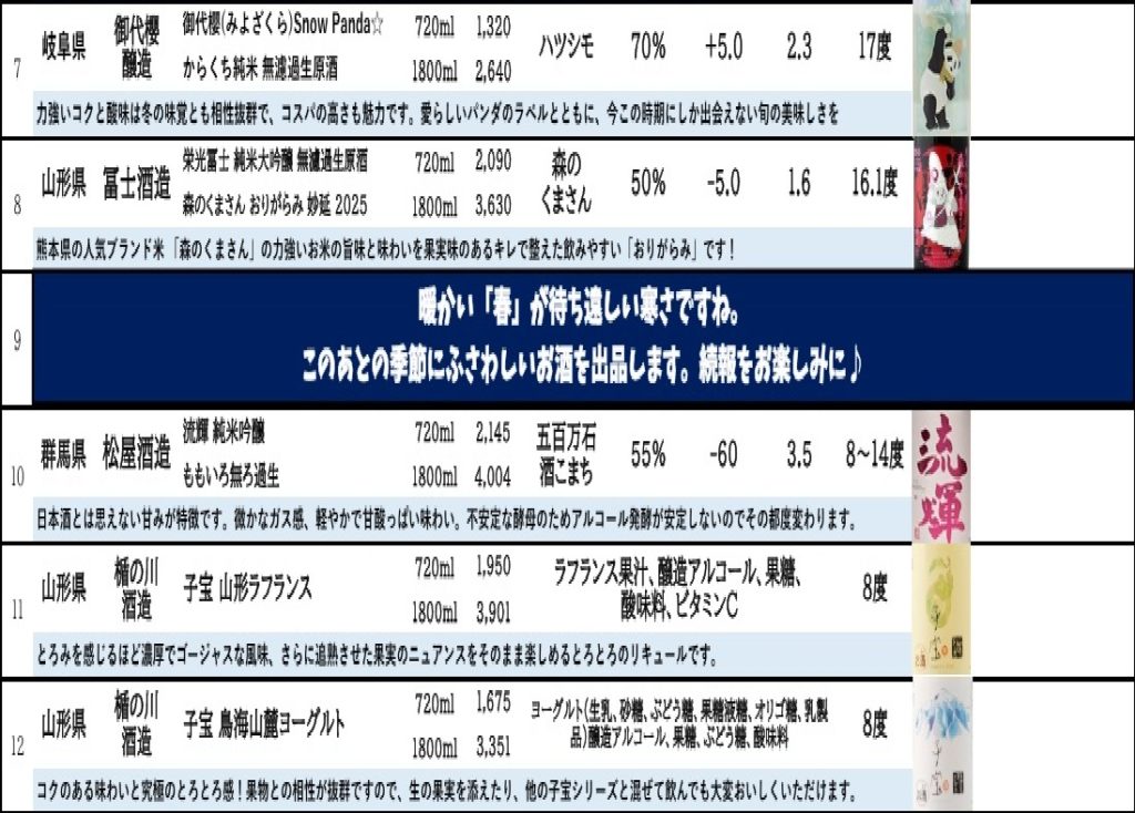 ※当日出品するお酒、予告なく変更となる場合がございます。ご了承の程宜しくお願い致します。